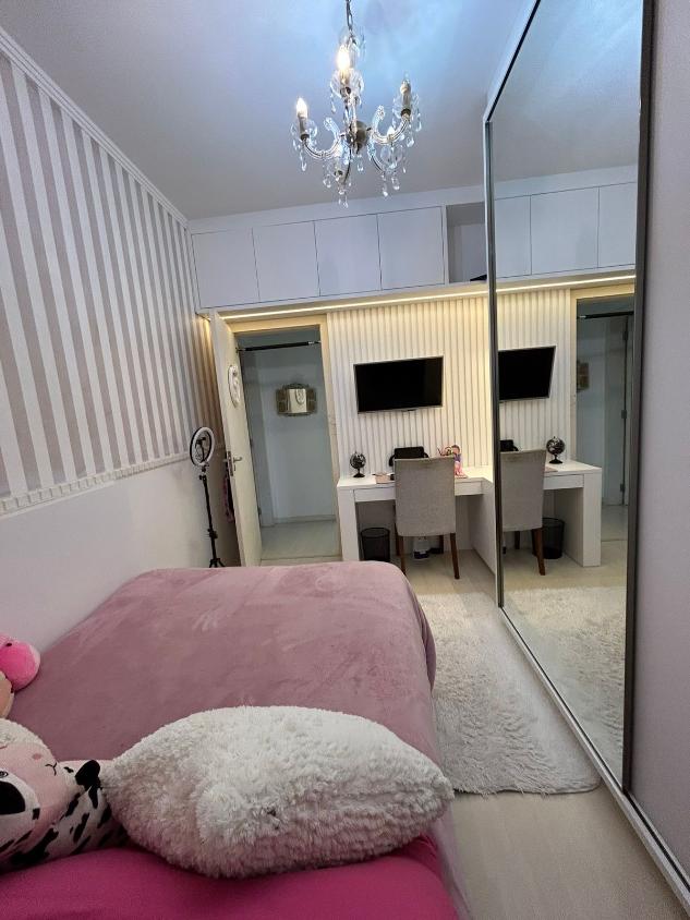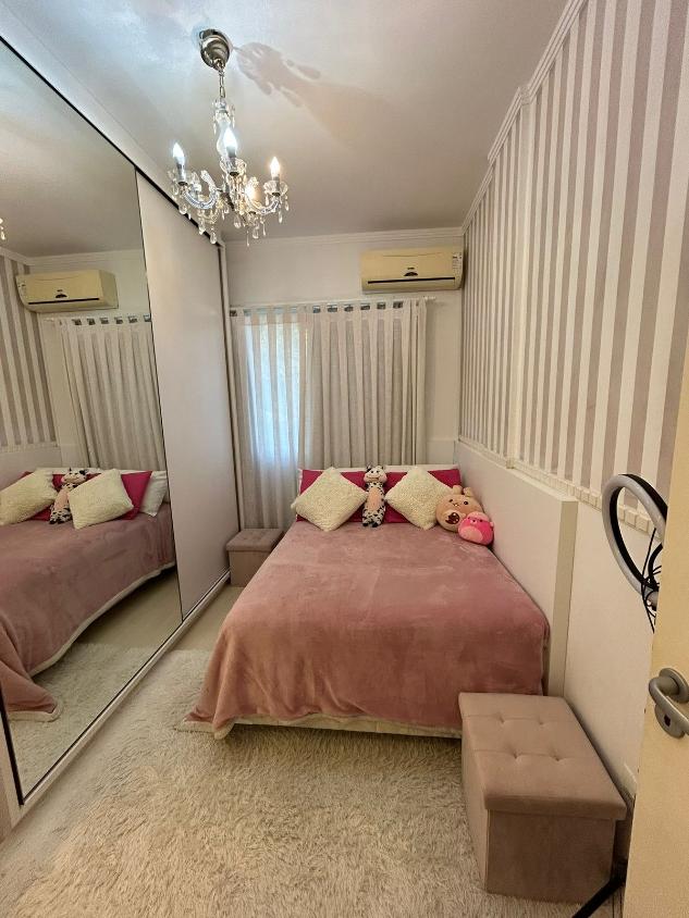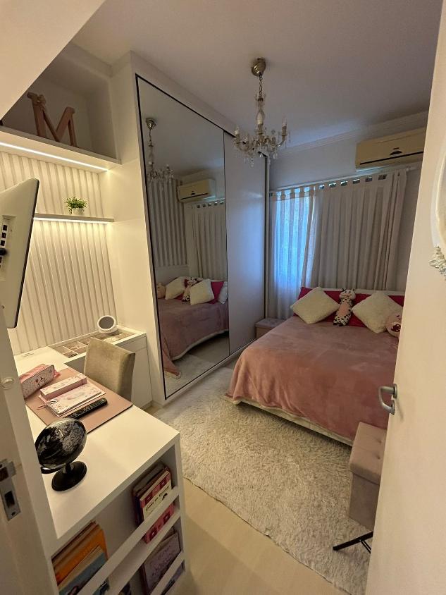 Apartamento de 77 m² pensado para quem busca conforto, praticidade e um ambiente que favorece a vida em família. São dois quartos, incluindo uma suíte, dois banheiros com box blindex, sala integrada à cozinha americana e uma sacada acolhedora com churrasqueira. O imóvel fica no segundo andar e conta com uma vaga de garagem e depósito privativo. Está mobiliado, com armários embutidos nos quartos, cozinha e banheiros, piso laminado, ar-condicionado, chuveiro a gás, área de serviço arejada e ventilação natural em vários ambientes.